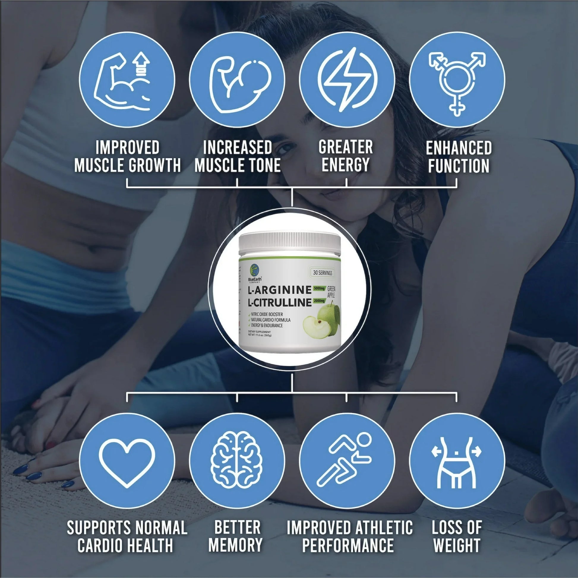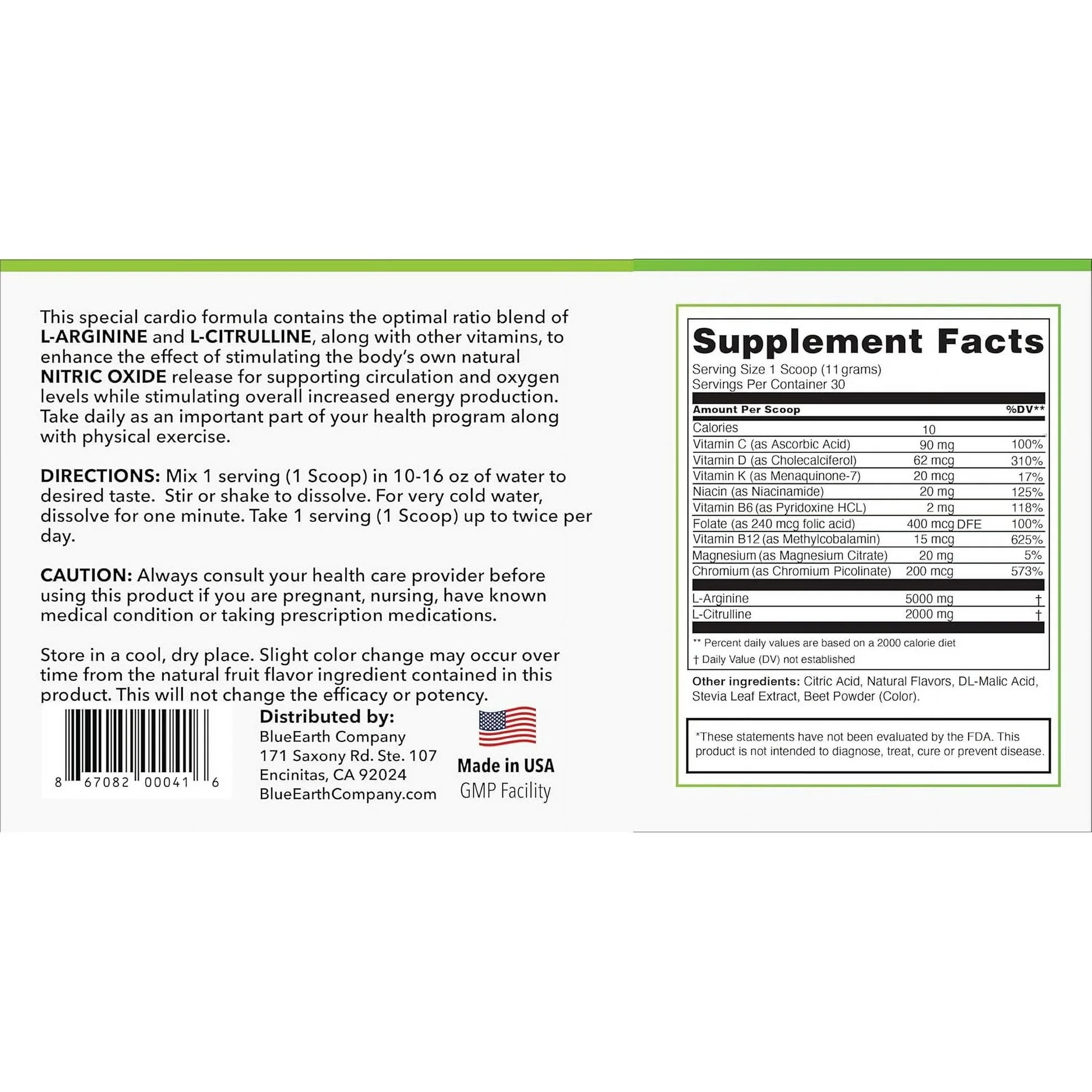 BlueEarth Company, Cardio Health Formula, Nitric Oxide Booster, L-Arginine 5000mg + L-Citrulline 2000mg, Blood Pressure Support, Green Apple